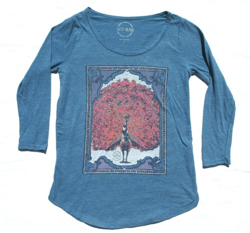 Lucky Brand Peacock T Shirt Small S Teal Blue Matchbox Graphic Tee Boho 3 4 Slvs Ebay